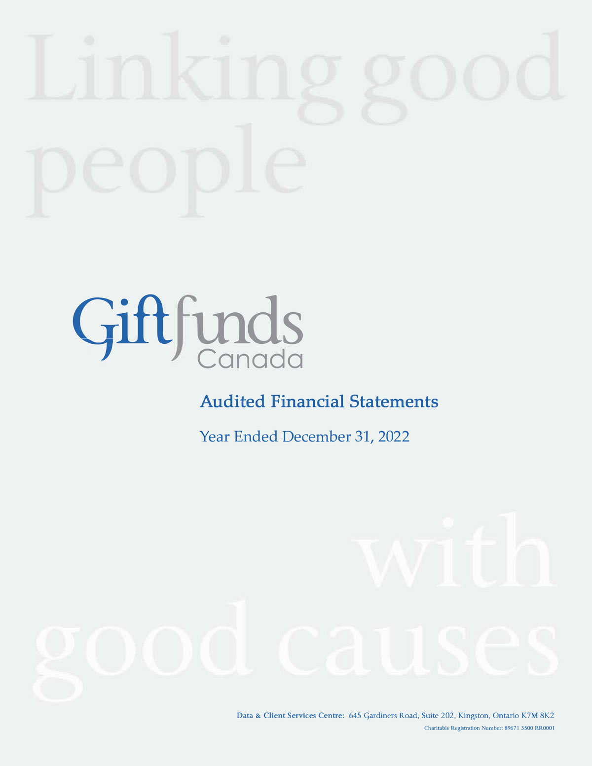 The Foundation undergoes a professional audit each fiscal year prior to filing its annual Information Return with the Canada Revenue Agency (CRA). Links to the PDF copies of the most recent audited financial statements are provided below. If you have any questions about the content of the reports or difficulty opening the files, don't hesitate to ask us (contactus@giftfunds.com).