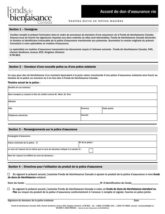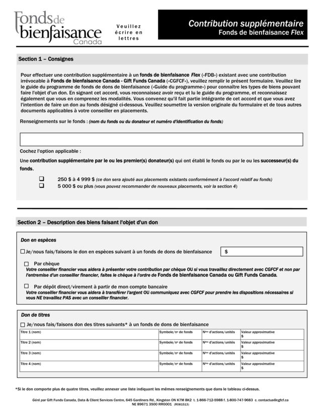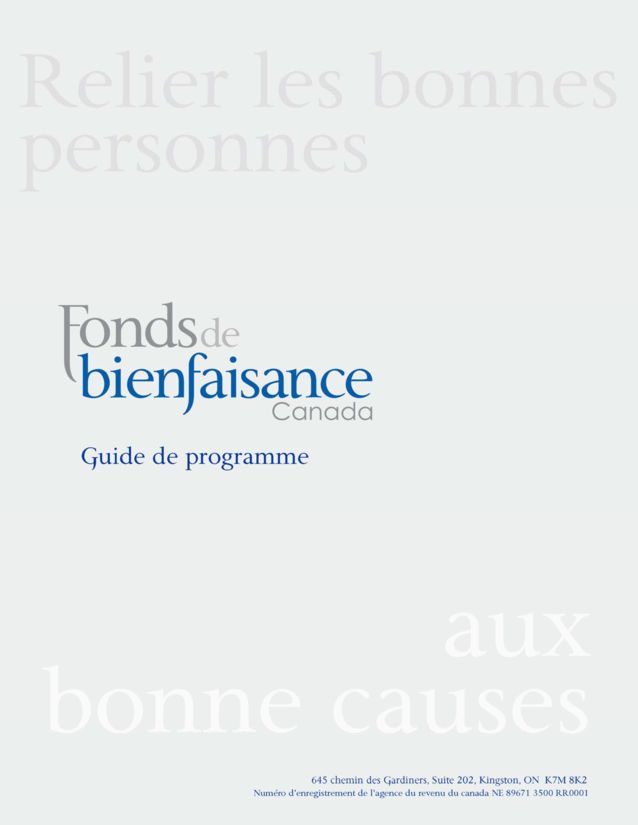 Guide des formulaires et des programmes de Fonds de bienfaisance Canada